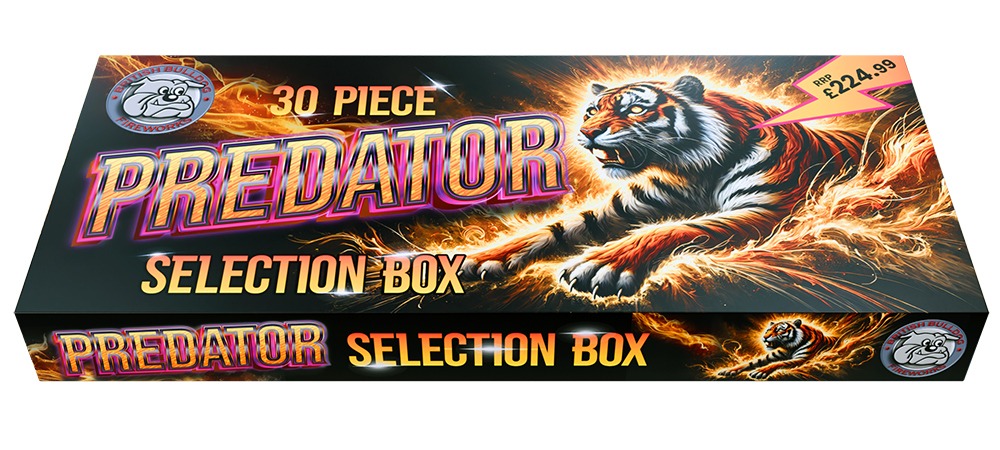 British BulldogPredator 30pc Selection Box 4150 Predator 30pc Selection Box 3 pieces per carton 1.4GHazard 8mSafety Distance RRP: £224.99 Downloads Image Downloads Predator-Render-hires Predator-Render-lowres