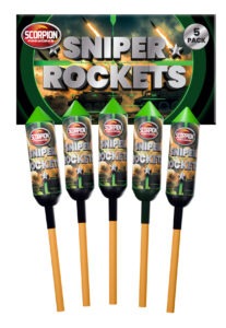 ScorpionSniper Rocket 5 Pack 5040 Sniper Rocket 5 Pack 12 pieces per carton 1.3GHazard 15mSafety Distance RRP: £34.99 Downloads Image Downloads 5040-Sniper-Rockets-Render-Hires 5040-Sniper-Rockets-Render-lowres
