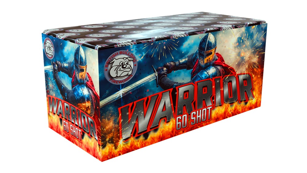 British BulldogWarrior 60 Shot Cake 4156 Warrior 60 Shot Cake 1 piece per carton 1.3GHazard 25mSafety Distance RRP: £144.99 Downloads Image Downloads 4156-Warrior-Render-hires 4156-Warrior-Render-lowres Download Video